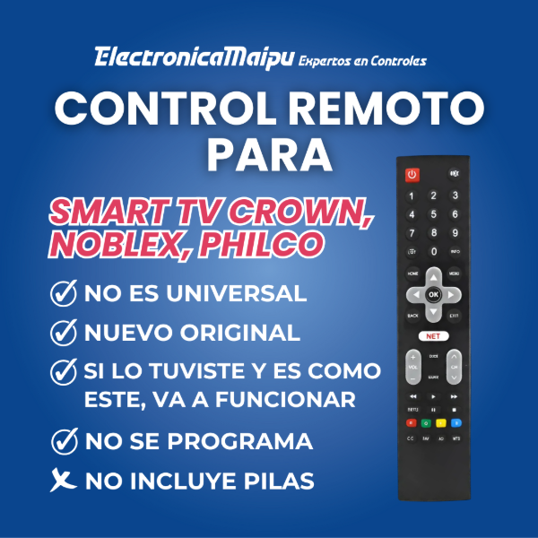 Este control es compatible con Smart Tv de las marcas SANSEI, NOBLEX, PHILCO